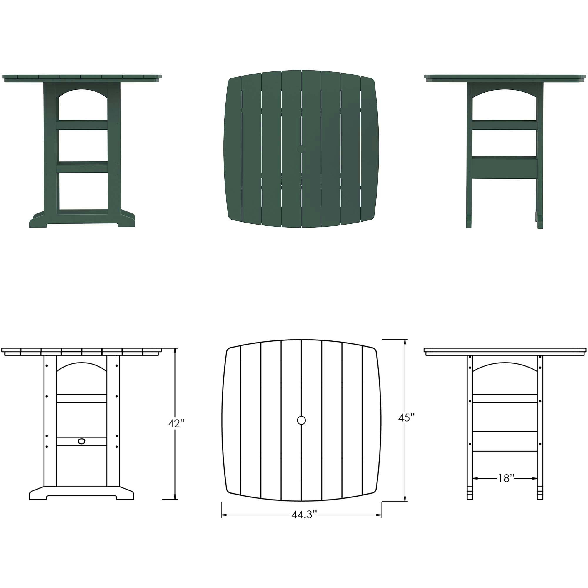 At Pawleys Island we are continuously striving to create quality outdoor products that are stylish and durable. The Refined Bar Height Table is made with DURAWOOD®, a high-density polyethylene or HDPE, made from recycled plastic milk jugs. Heavier and more sturdy than natural wood, DURAWOOD® can withstand the most extreme weather and can be left outdoors all year long.