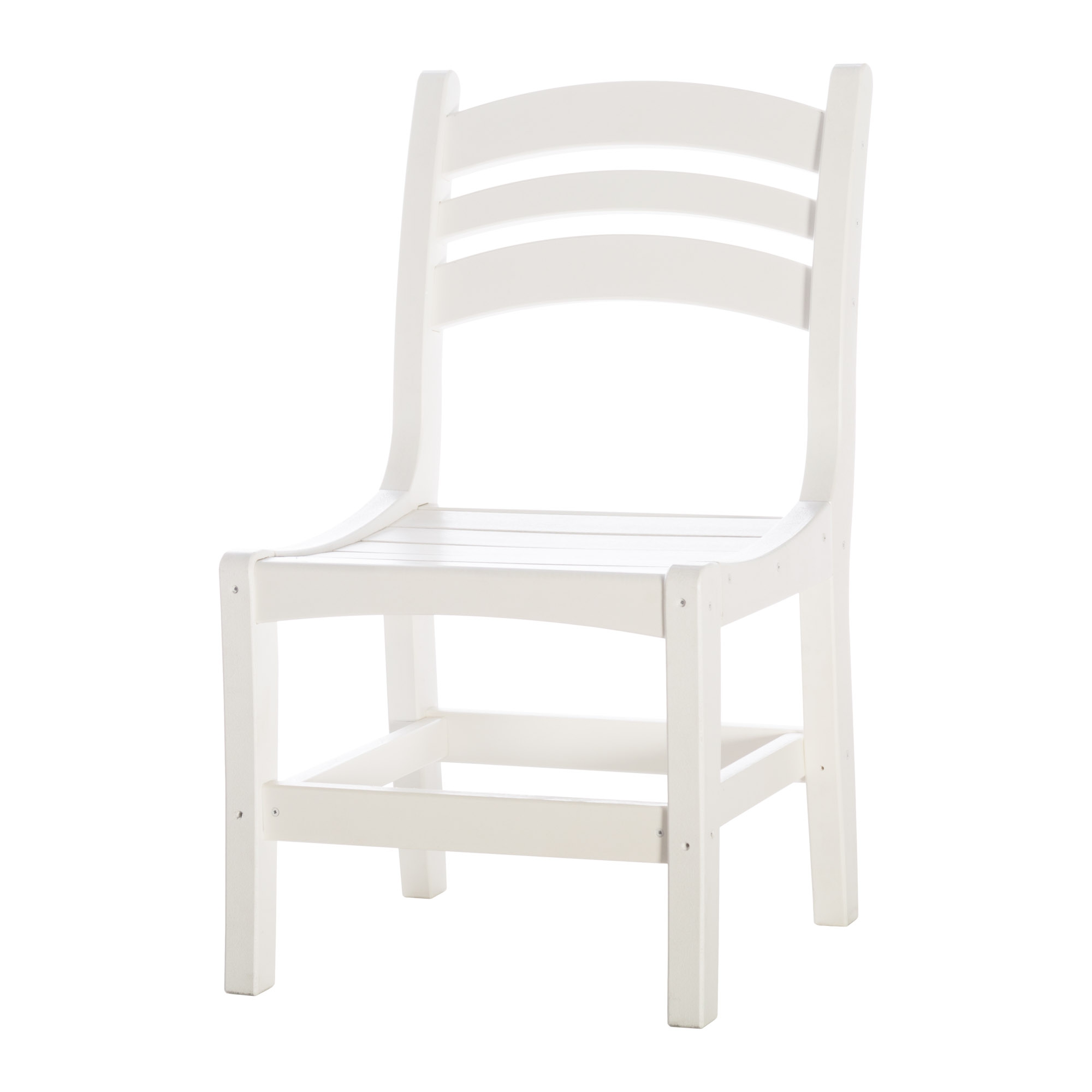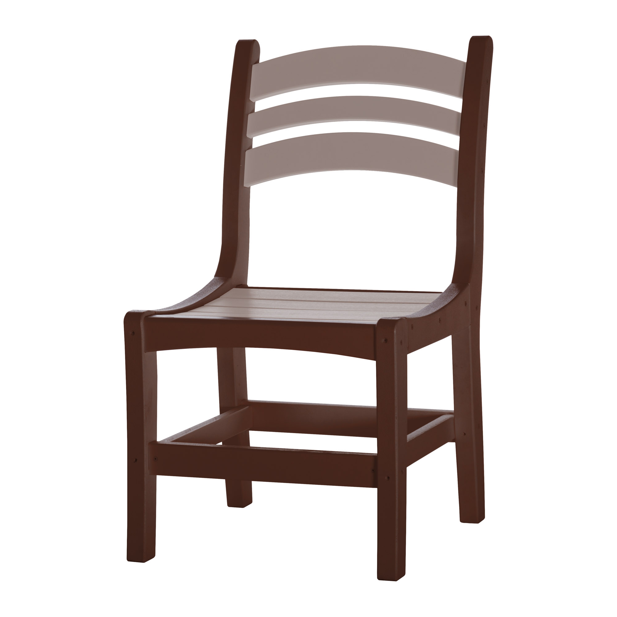 The DURAWOOD® used to construct this dining chair is made from HDPE recycled consumer plastic that's been sterilized for safety and to eliminate impurities. DURAWOOD® contains no waste-wood fiber, so it not only won't absorb water, but also won't rot, splinter, crack or attract termites. It also never needs stain or any other kind of sealant, yet holds up to vigorous rains, extreme temperatures and high winds, making it the perfect outdoor furniture material.