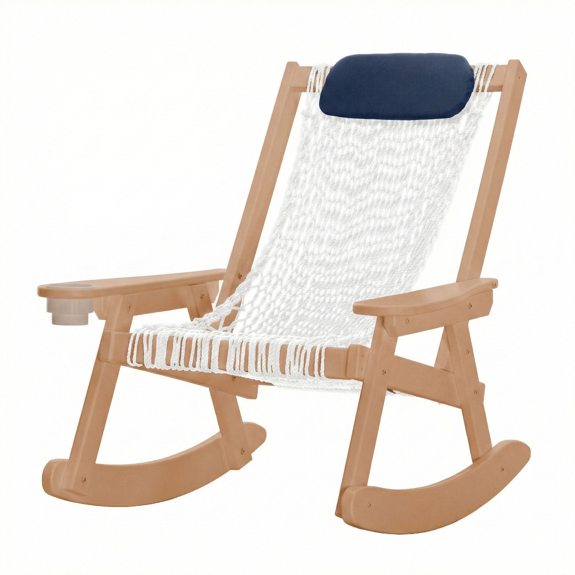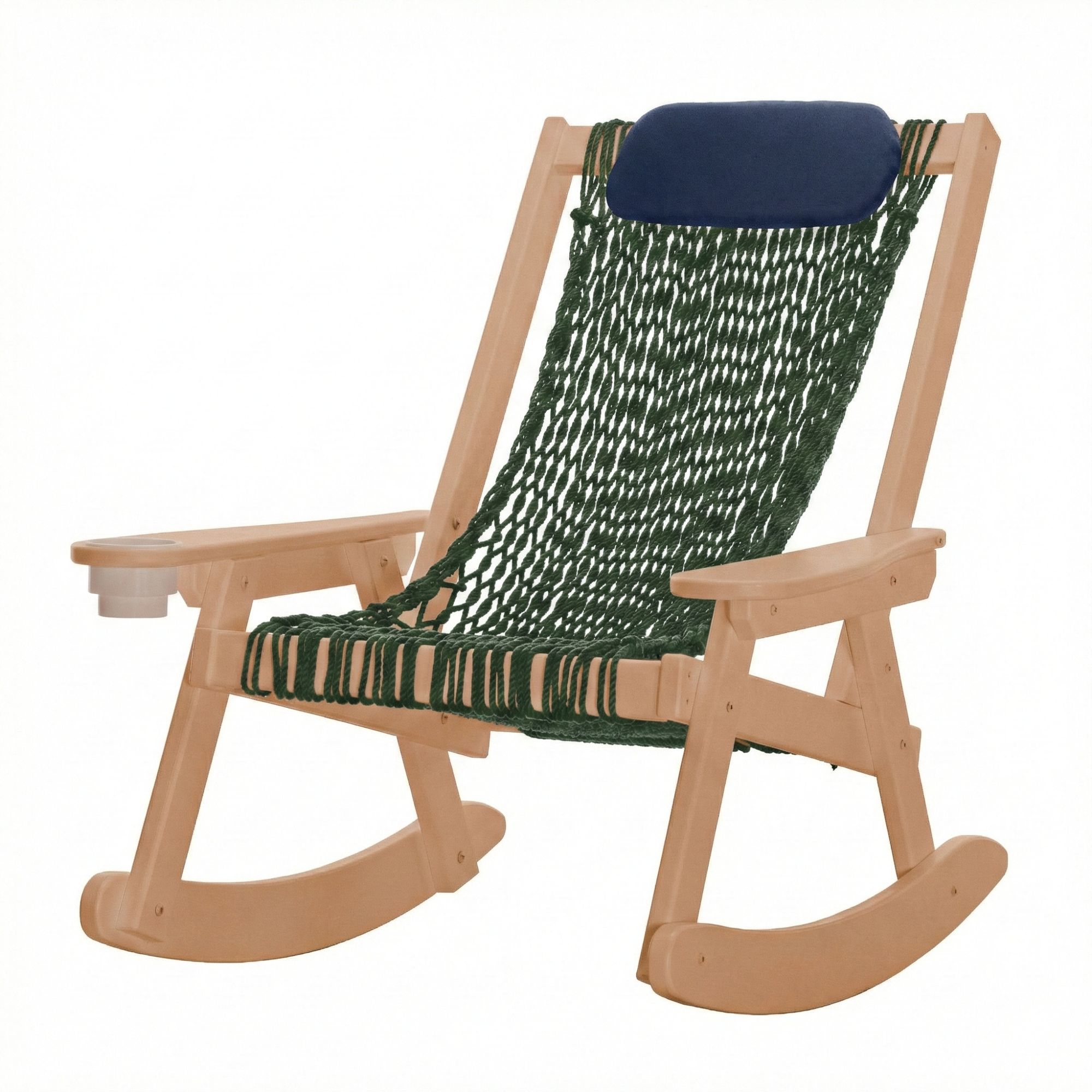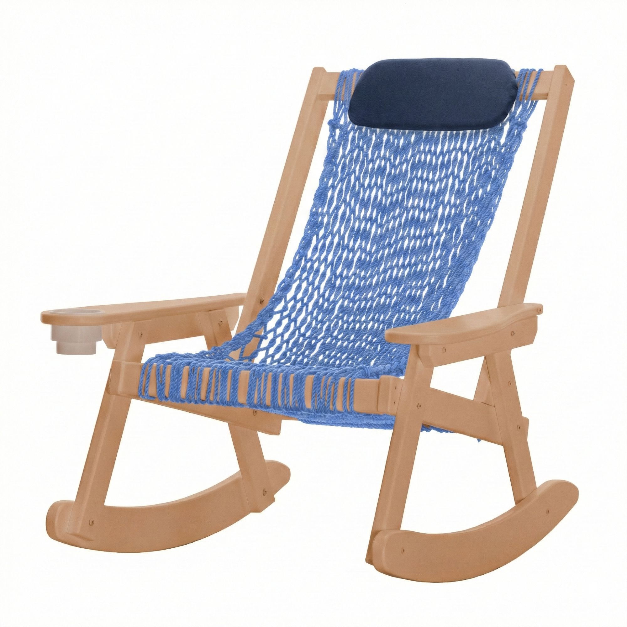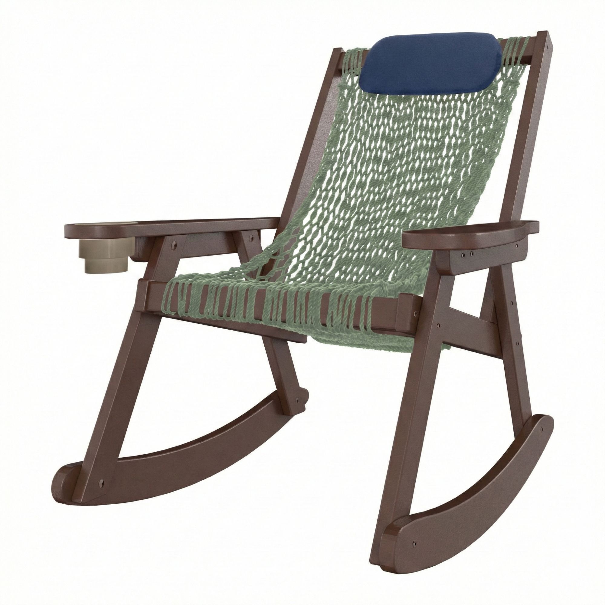Sit a spell, rock a spell. We've taken the traditional rocking chair, constructed the fashionable frame using our trademarked DURAWOOD® furniture and combined it with the comfort of our world famous rope hammocks for years of worry free enjoyment!