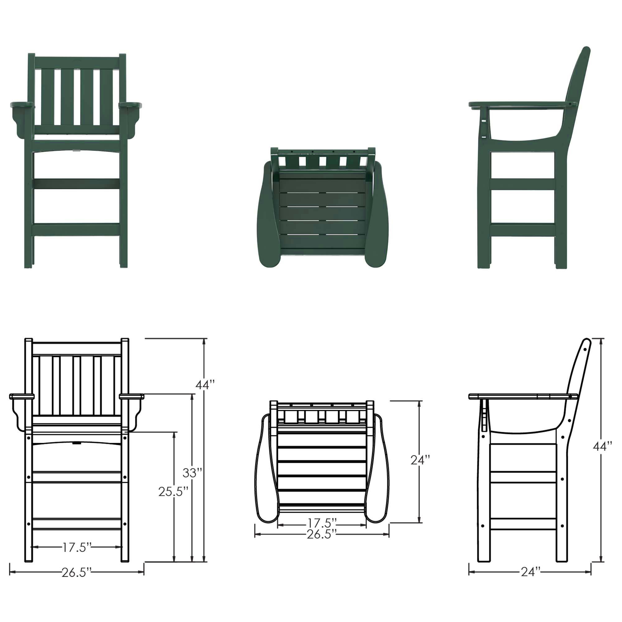 Whether placed on a patio, deck, or garden space, the DURAWOOD® Poly Vertical Counter Height Chair with Arms combines contemporary design, comfort, and durability, making it a versatile addition to any outdoor space.