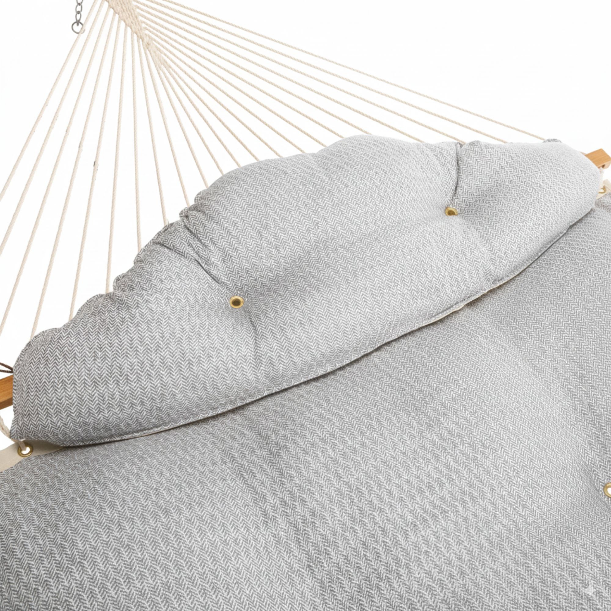 Our Large Bella Dura Tufted Hammock with Detachable Pillow - Festoon Pewter is the perfect blend of comfort and style, offering a serene escape for relaxation and enjoyment in any outdoor space. The Large Bella Dura Tufted Hammock with Detachable Pillow - Festoon Pewter brings together timeless elegance, luxurious comfort, and unmatched durability for the ultimate outdoor retreat. Featuring the sophisticated Festoon Pewter design, this hammock showcases a neutral yet striking pattern of soft greys perfect for complementing any outdoor décor with understated charm and flexibility.