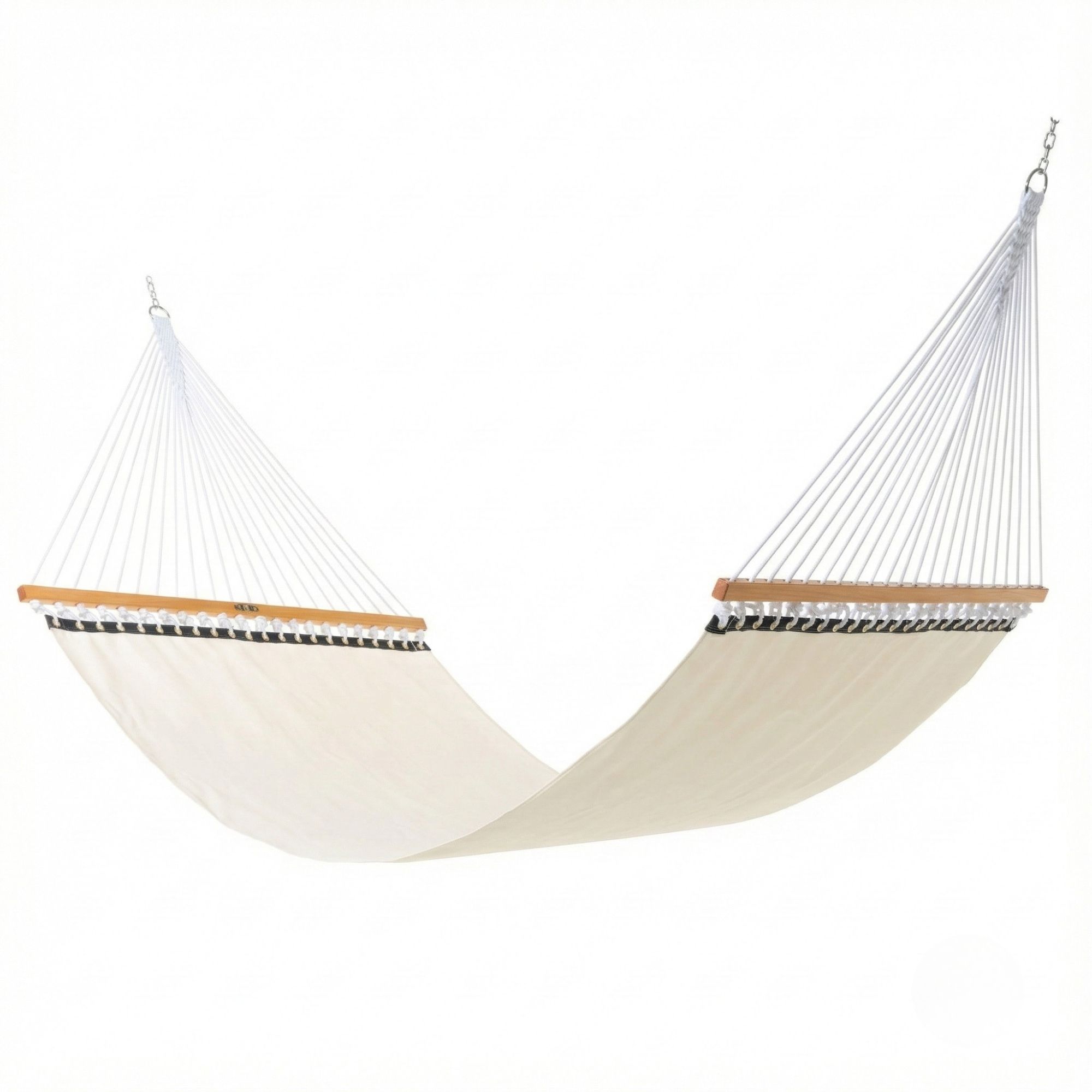 The Sunbrella Quick Dry Hammocks are designed to be the fastest drying hammocks on the market while still giving you the consistent comfort of a fabric hammock. So, when you want to dry off after getting out of the pool by soaking up some sun in your hammock, don’t worry about getting your hammock wet. The quick dry hammocks are recommended for any space, even poolside, shaded and high moisture areas. We use a high-performance Sunbrella Sling fabric that combines the exceptional strength of vinyl yarns with the softness of Sunbrella. This extremely durable outdoor fabric is fade and stain resistant and provides a sleek designer look and effortless maintenance.