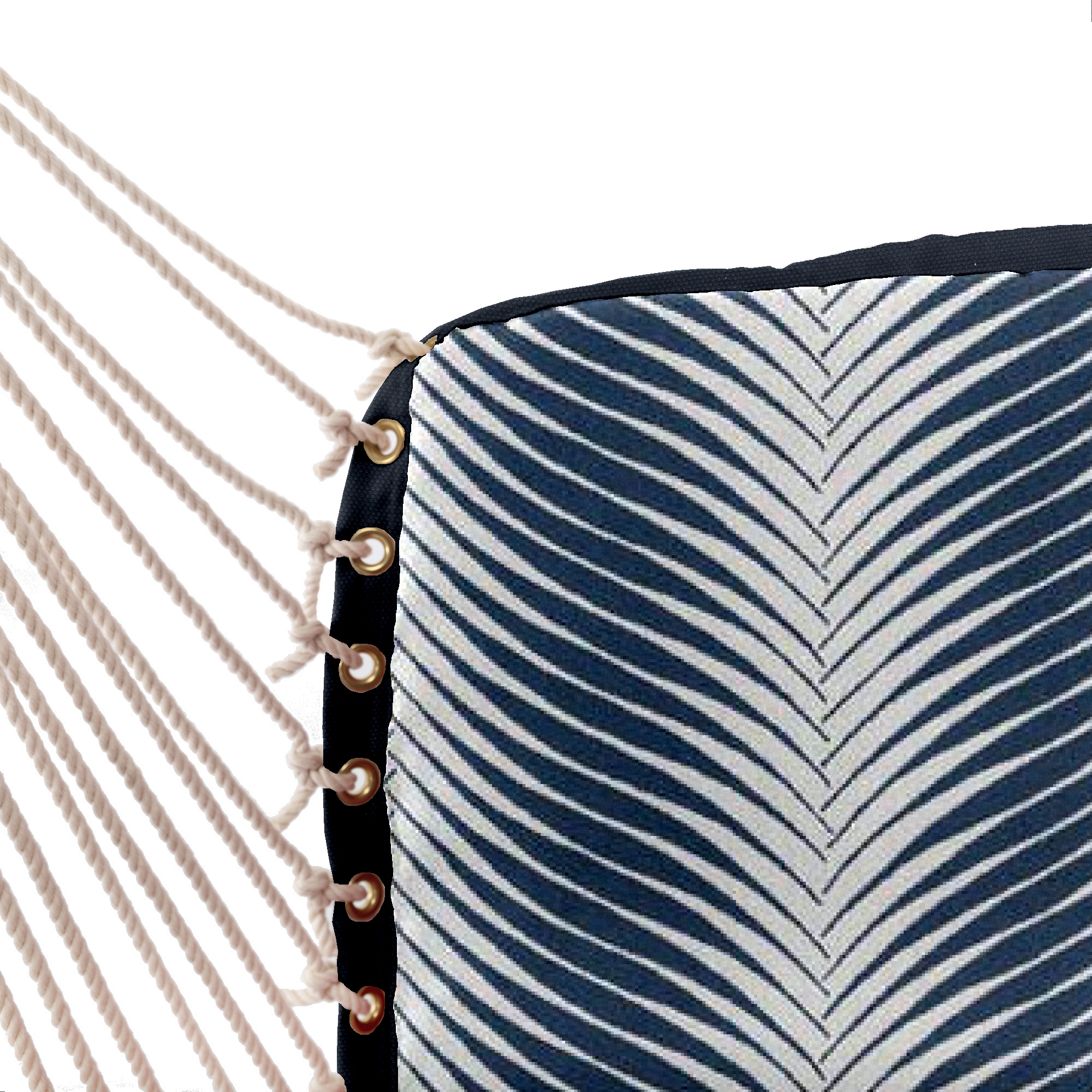 A wood that is naturally resistant to both rot and insect infestation, and has oils that repel water, Oak blends both exceptional strength and a handsome appearance. Our Oak spreader bars are repeatedly hand-dipped in honey-gold marine-grade varnish allowing a longer outdoor life and exceptional good looks. Our Oak spreader bars are a full 1 inch thick, compared to most other competitor’s spreader bars that measure at ⅞ inch. A thicker spreader bar allows for more stability, allowing the Swing Cushion to sit firmly between the Ring knots. Our spreader bars also feature countersink drilled holes. Countersink drilling is a technique that uses a trumpet drill bit that produces a hole with no hard angles, allowing the rope to pass through without any sharp edges to wear the rope.